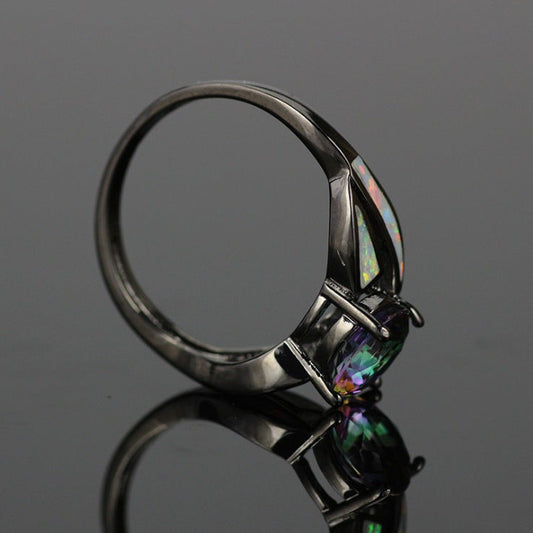 Simple And Versatile Sterling Silver Slender Rainbow Stone Ring Female Small Fresh Gypsophila Index Finger Ring